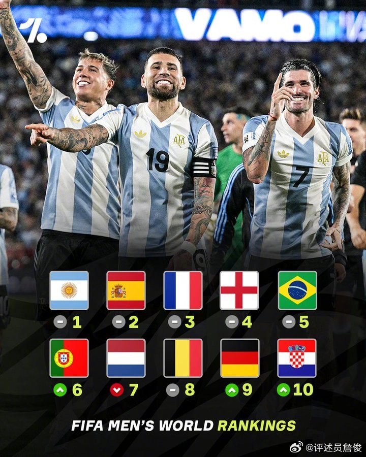 詹俊在社媒写道:目前国际足联排名前十的球队中古厄巴萨vs魔格巴萨,苏超直播在线观看谁将是明年美加墨世界杯赛 阿根廷队蝉联第一名 路上最强的对手?西班牙和法国当然虎视眈眈,个人觉得如今安切洛蒂执教下的巴西是不是也不能忽视?