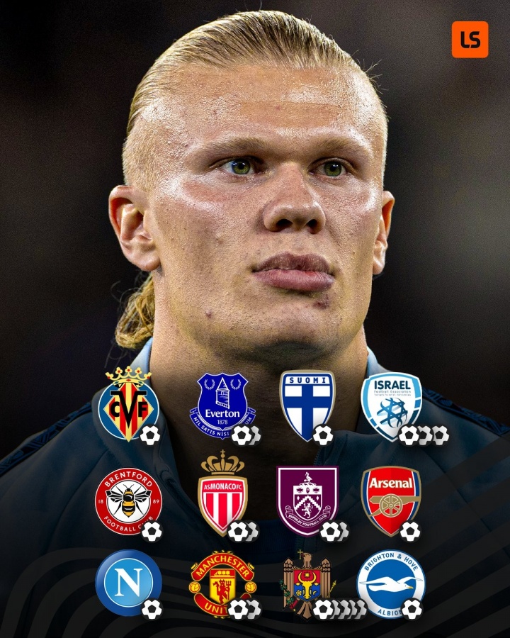 10月22日讯 欧冠曼城vs黄潜,哈兰德上半场打入一球,哈兰德各赛事连续12场破门!