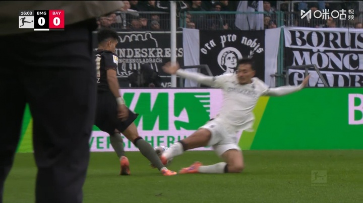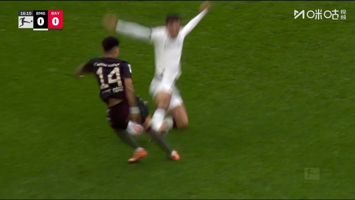 10月25日讯 德甲第8轮,拜仁客战门兴,赛事 第17分钟,门兴的韩国归化中场球员卡斯特罗普飞铲迪亚斯,苏超直播裁判 首先出示警告 ,随后经VAR提醒后观看回放并改判直红,拜仁多打一人!